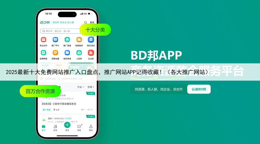 今天就整理了 2025年仍然可用的十大免费网站推广入口,涵盖APP拉新、地推网推、内容推广等方向,建议收藏备用BD邦老牌推广平台,聚合了大量APP拉新、网盘注册、电商活动等项目,适合想要对接一手资源的推广人。