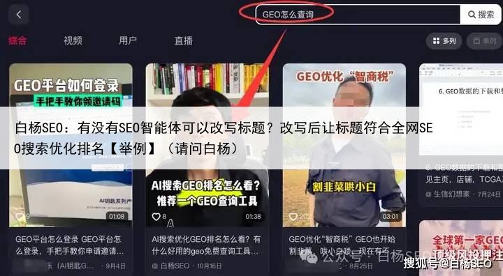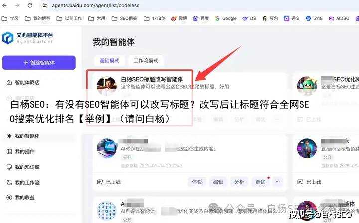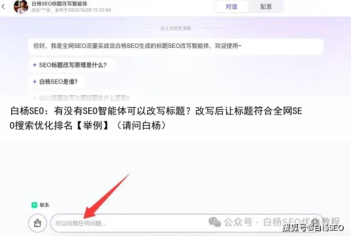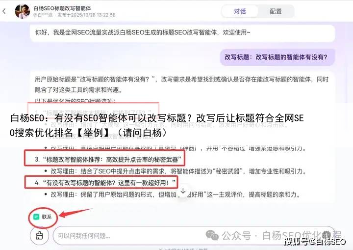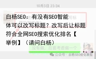 白杨SEO:有没有SEO智能体可以改写标题?改写后让标题符合全网SEO搜索优化排名【举例】(请问白杨)