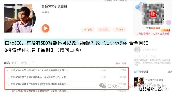 好了,当然上面说的是文字内容,当下是播客,图文,短视频,直播更多,其实这些做好内容最底层不变,就是你这个内容给看到用户到底有没有用?比如白杨SEO会把公众号内容同步转播客发小宇宙,喜马拉雅等,小红书,抖音,视频号短视频,直播都有在做搜索流量。