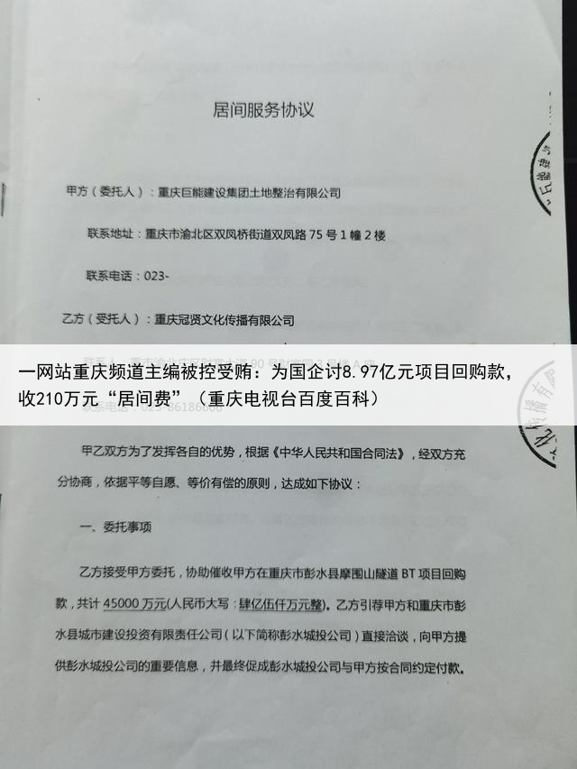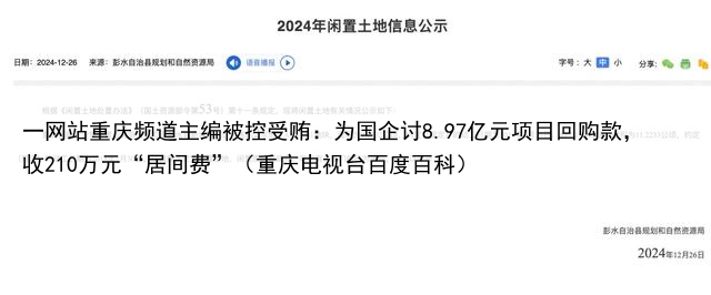 一网站重庆频道主编被控受贿:为国企讨8.97亿元项目回购款,收210万元“居间费”(重庆电视台百度百科)