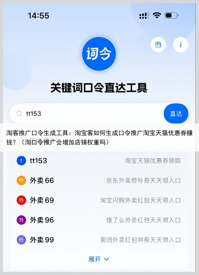 用户如何使用推广口令领取淘宝天猫优惠券?1、例如:某淘客推广口令是:tt153。用户打开词令APP,输入推广口令“ tt153 ”;
