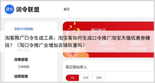 淘客推广口令生成工具:淘宝客如何生成口令推广淘宝天猫优惠券赚钱?(淘口令推广会增加店铺权重吗)