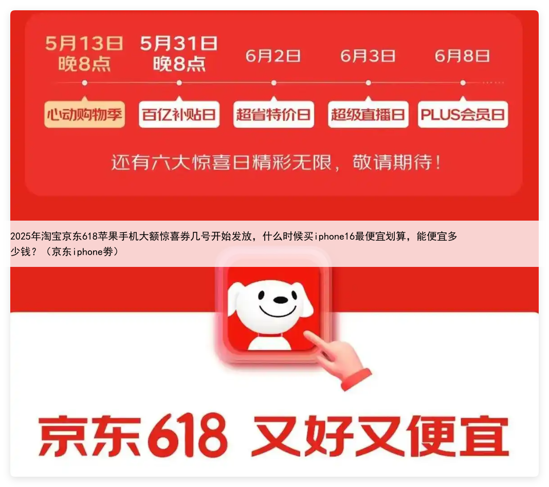 2025年淘宝京东618苹果手机大额惊喜券几号开始发放,什么时候买iphone16最便宜划算,能便宜多少钱?(京东iphone劵)