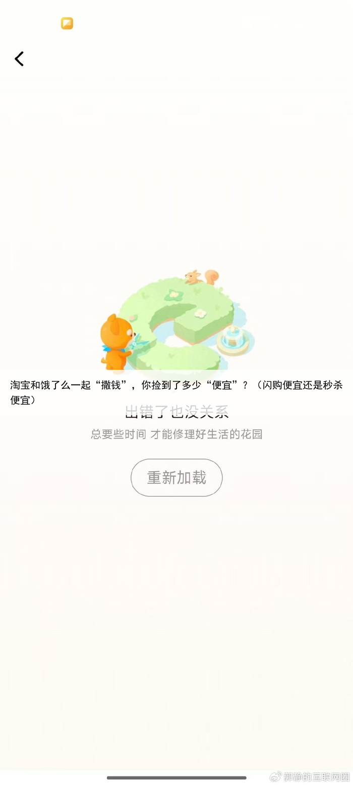 2.服务器问题,据我的测试发现,点饿了么红包的时候,出现短暂的页面错误,重新刷新后才能进入,也有网友在淘宝上遇到服务器崩了的情况,每到这种时候我都会想,平时说的天花乱坠、强大无比的“云计算”究竟是怎么回事儿?不做压力测试的吗,这样就崩了?