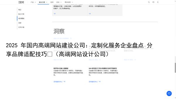 其服务让跨国品牌的官网既能实现全球协同,又能深度贴合本地市场,成为连接全球用户的有效桥梁 IBM Ⅸ—— 技术集成巨头,企业级数字化转型解决方案服务商 IBM Ⅸ(IBM Interactive Experience)是 IBM 旗下专注数字体验设计与技术开发的高端服务品牌,凭借强大的技术实力与企业级服务经验,成为 2025 年高端建站市场中技术需求复杂企业的首选。