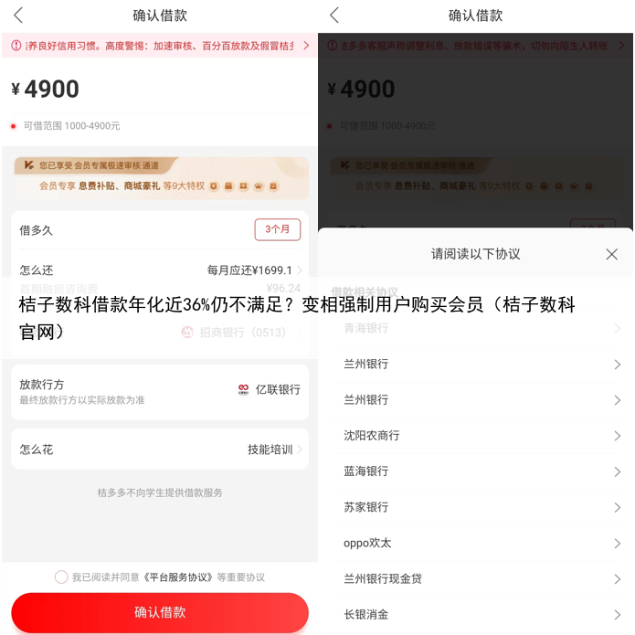 桔子数科借款年化近36%仍不满足?变相强制用户购买会员(桔子数科官网)