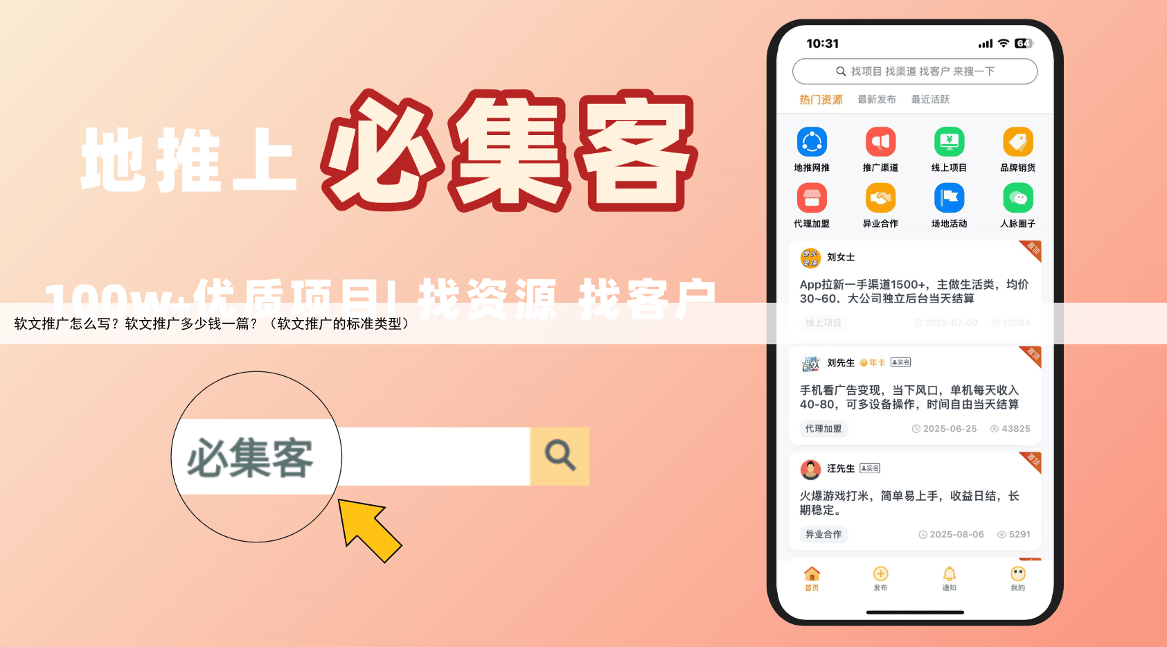 三、推广上必集客商务资源对接平台在软文推广的过程中,选择合适的发布平台同样重要必集客商务资源对接平台作为一个集项目发布、资源对接、商务合作等功能于一体的综合性平台,为软文推广提供了丰富的资源和便捷的服务。
