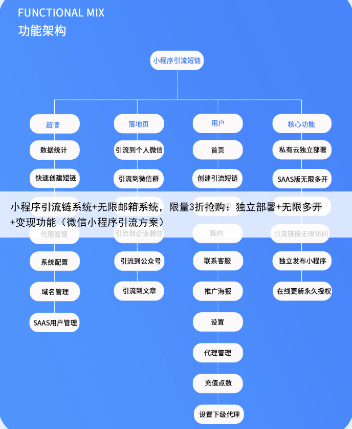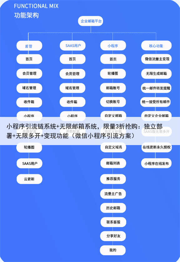 “小程序全网引流链系统(链接一键跳入到微信生态)”+“无限邮箱系统”,限量3折抢购:独立部署+无限多开+变现功能站长团购本次为大家带来了两套优质系统,分别是“全网引流链接系统”及“无限企业邮箱系统”团购期间,购买其中任意一套享498元/套,两套一同购买享798元/两套。