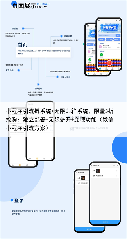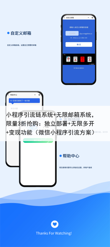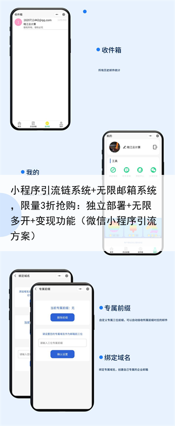 小程序引流链系统+无限邮箱系统,限量3折抢购:独立部署+无限多开+变现功能(微信小程序引流方案)