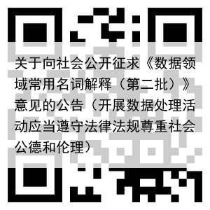 关于向社会公开征求《数据领域常用名词解释(第二批)》意见的公告(开展数据处理活动应当遵守法律法规尊重社会公德和伦理)