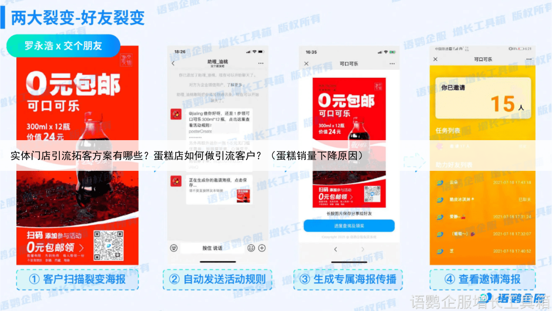 每天定时分享新鲜出炉的蛋糕照片配温馨文案,既提醒客户尝试新品,又营造用心制作的品牌形象口碑裂变是实现指数级增长的关键语鹦企服的好友裂变功能提供系统性解决方案,店主可设置"邀请2人得88折,邀请8人得五折券"等阶梯奖励,客户生成专属海报邀请好友,完成任务自动获得奖励。