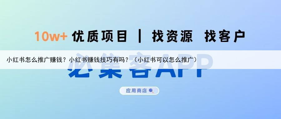 小红书怎么推广赚钱?小红书赚钱技巧有吗?(小红书可以怎么推广)