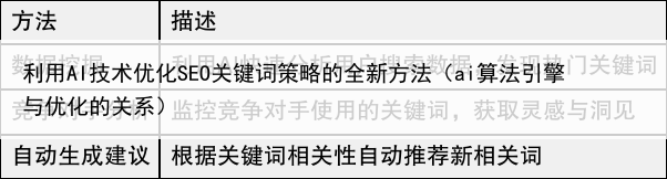 利用AI技术优化SEO关键词策略的全新方法(ai算法引擎与优化的关系)