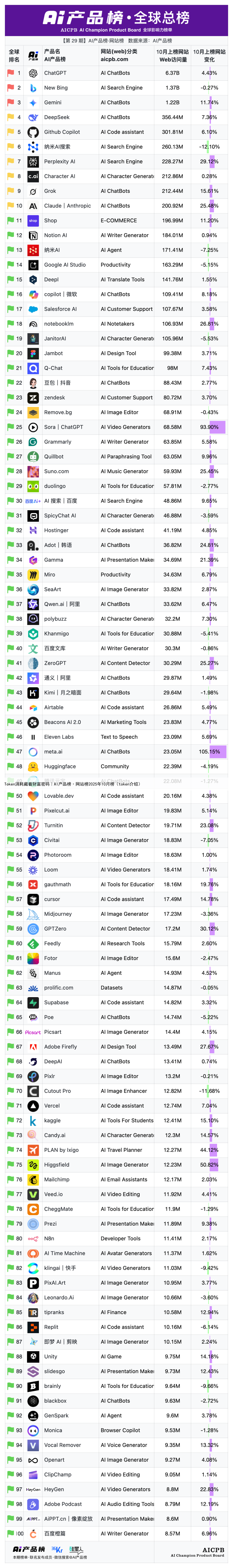 AI产品榜·网站榜2025年10月榜单2025年10月AI产品榜·网站榜·全球总榜TOP100