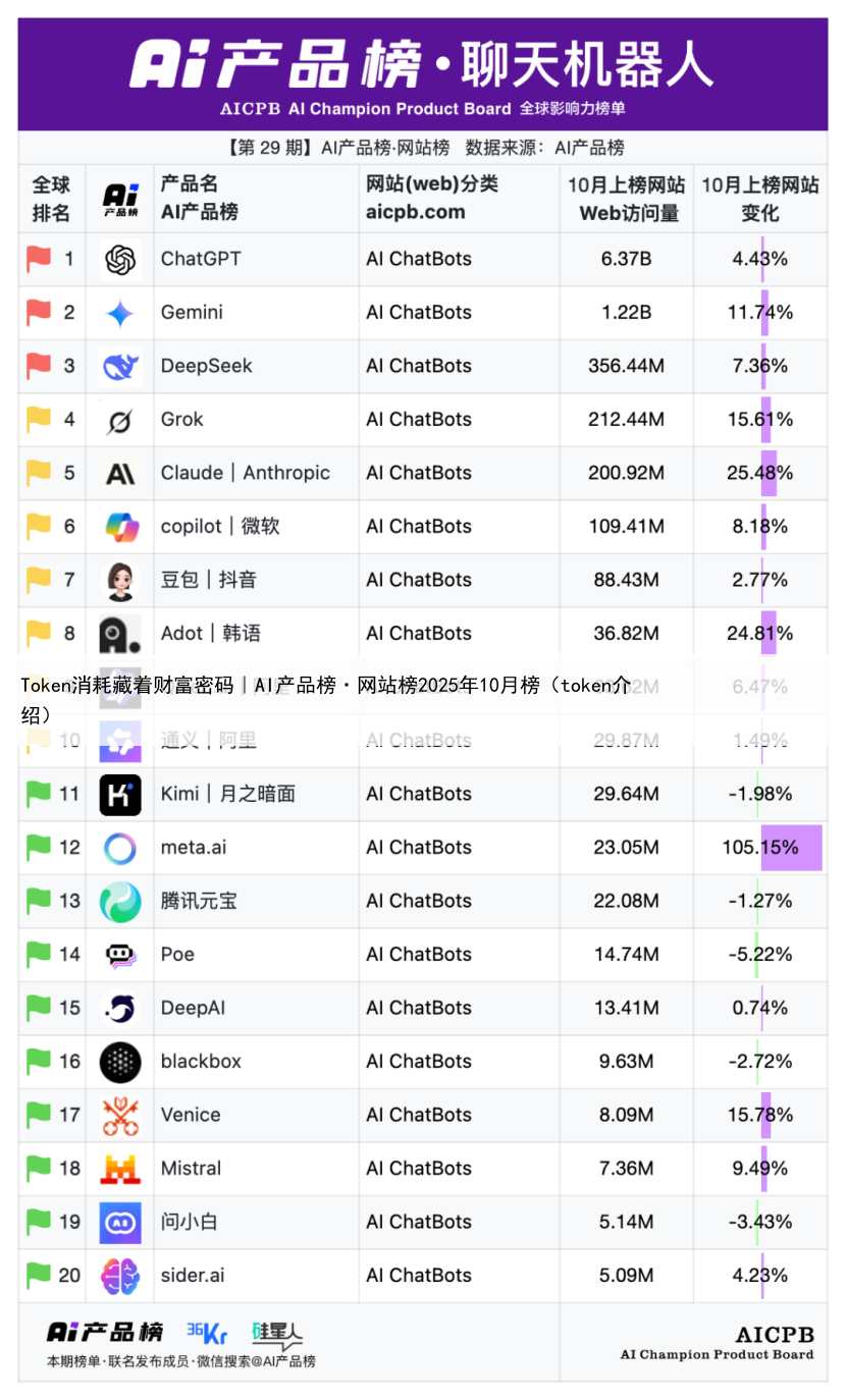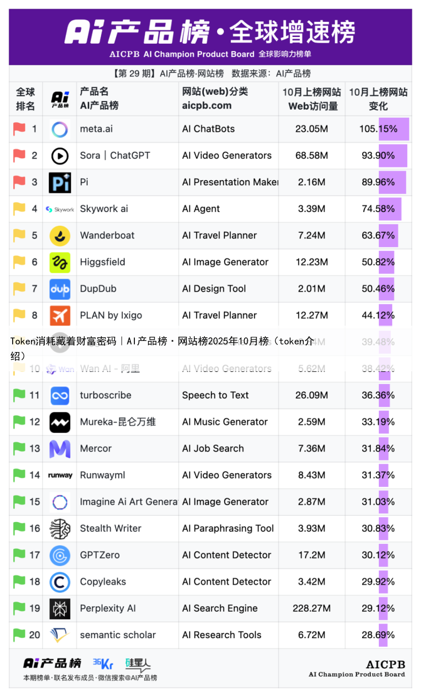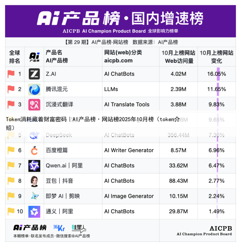 Token消耗藏着财富密码|AI产品榜·网站榜2025年10月榜(token介绍)