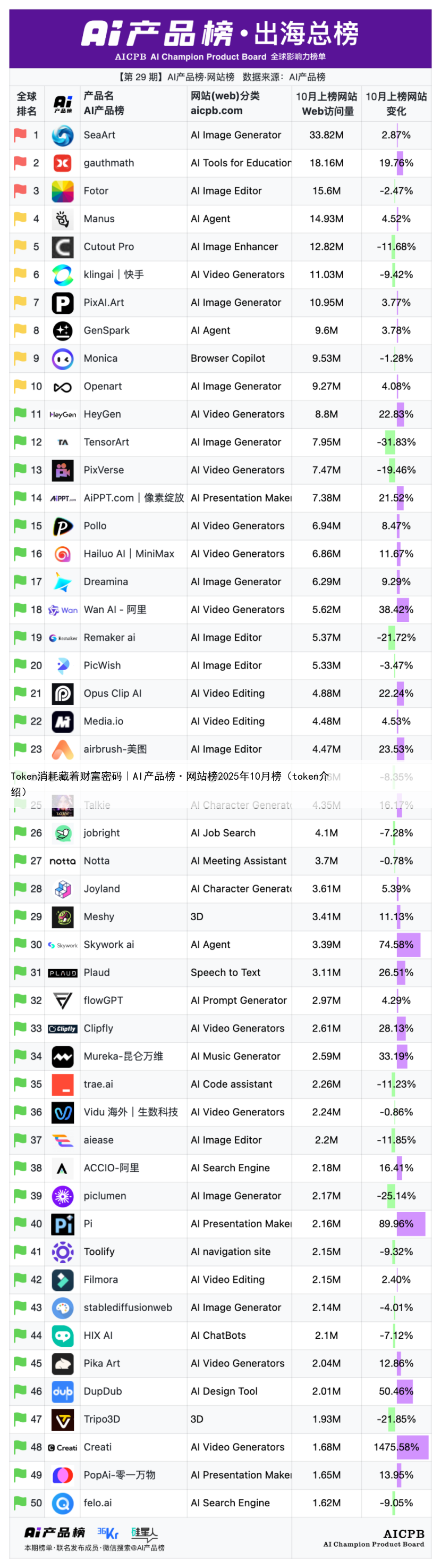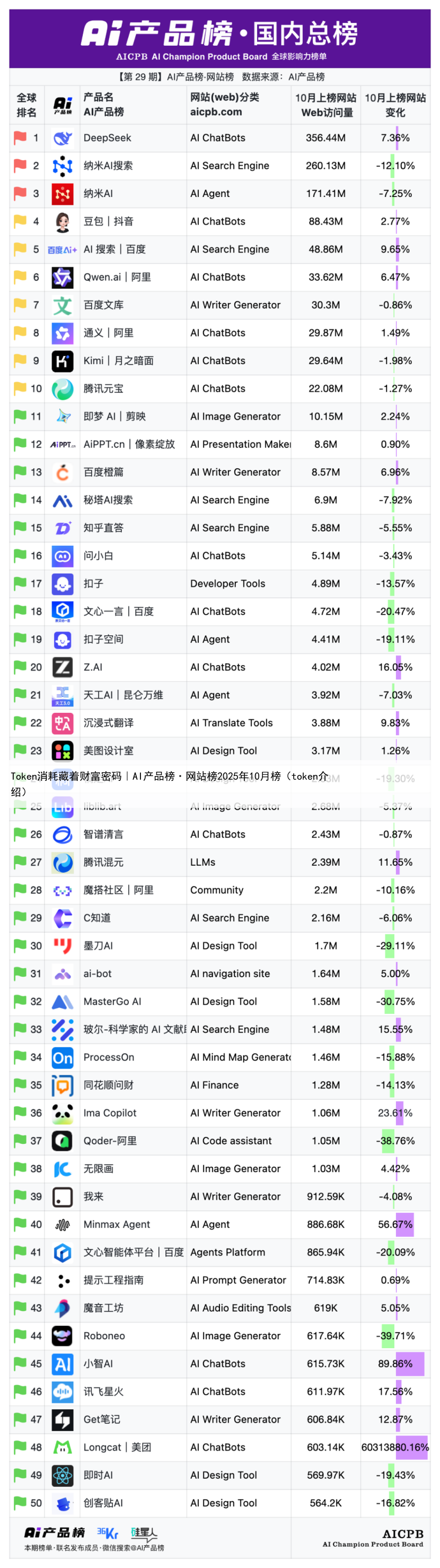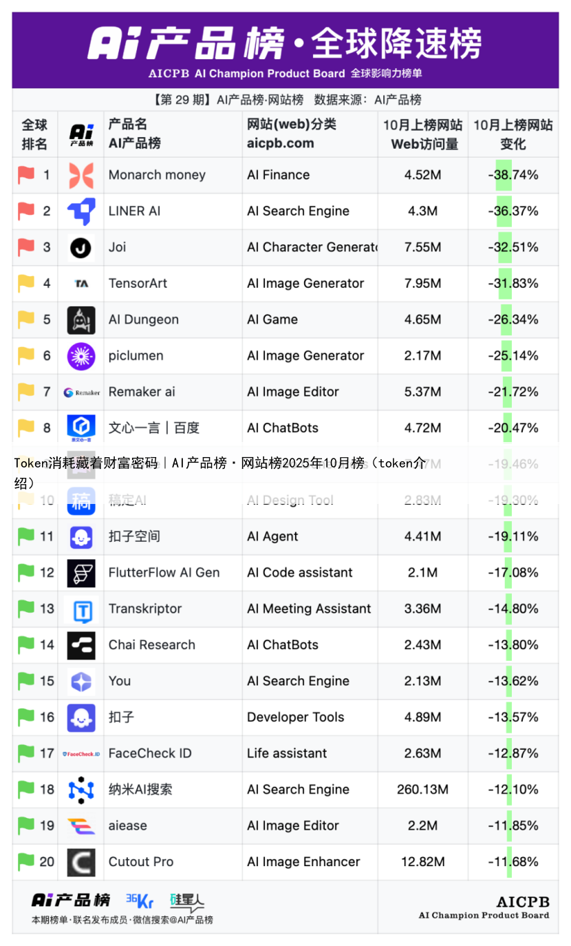 Token消耗藏着财富密码|AI产品榜·网站榜2025年10月榜(token介绍)