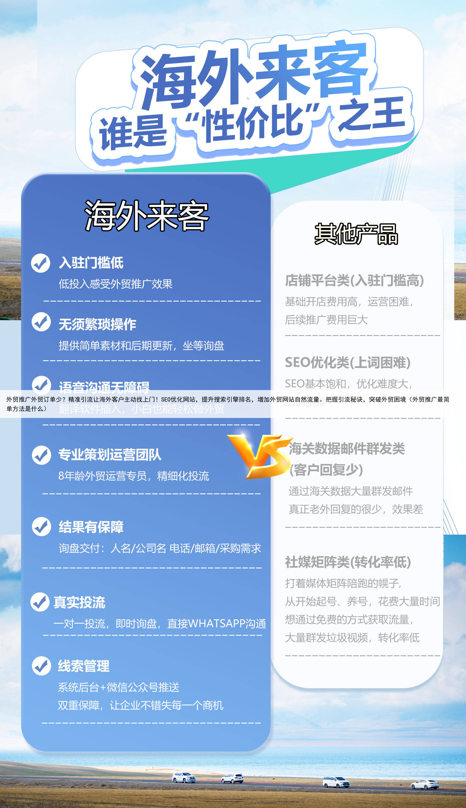 外贸推广外贸订单少?精准引流让海外客户主动找上门!SEO优化网站,提升搜索引擎排名,增加外贸网站自然流量。把握引流秘诀,突破外贸困境(外贸推广最简单方法是什么)