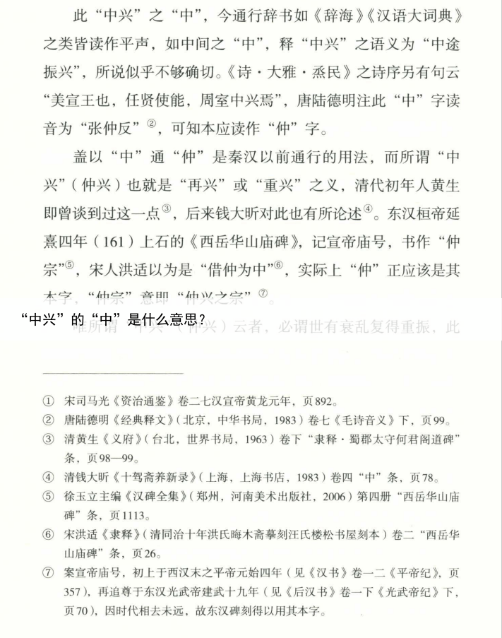 钱大昕只是认为“中兴”的“中”可以读去声,但也指出,在唐诗中它有平去两读,意思都是一样的,并没有说“中”有“再”的意思,所以,钱大昕不能背这个锅从《经典释文》来看,确实有古人认为“中兴”的“中”应该读去声,但颜师古注《汉书》,“中兴”这个词从来不注反切,而在表示“中伤”意思的时候,他会特别注去声的反切。