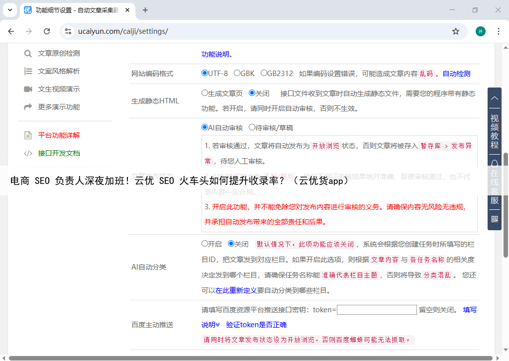 电商 SEO 负责人深夜加班!云优 SEO 火车头如何提升收录率?(云优货app)