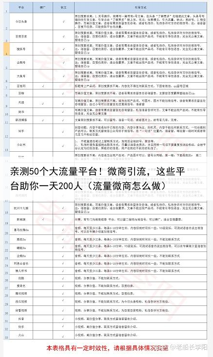 这个问题老船长非常有发言权,了解我的都知道,过去的7年间,我研究应用了全网的将近30个平台2年多培训780多名同学通过全网引流精准客户每个平台的规则,发布技巧,注意事项以及怎么留号引导到v都是了如指掌,如数家珍。