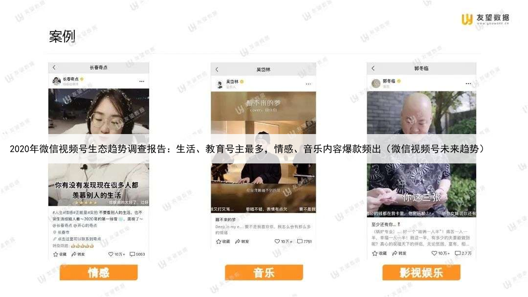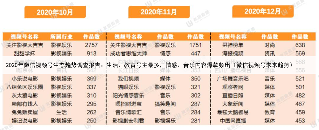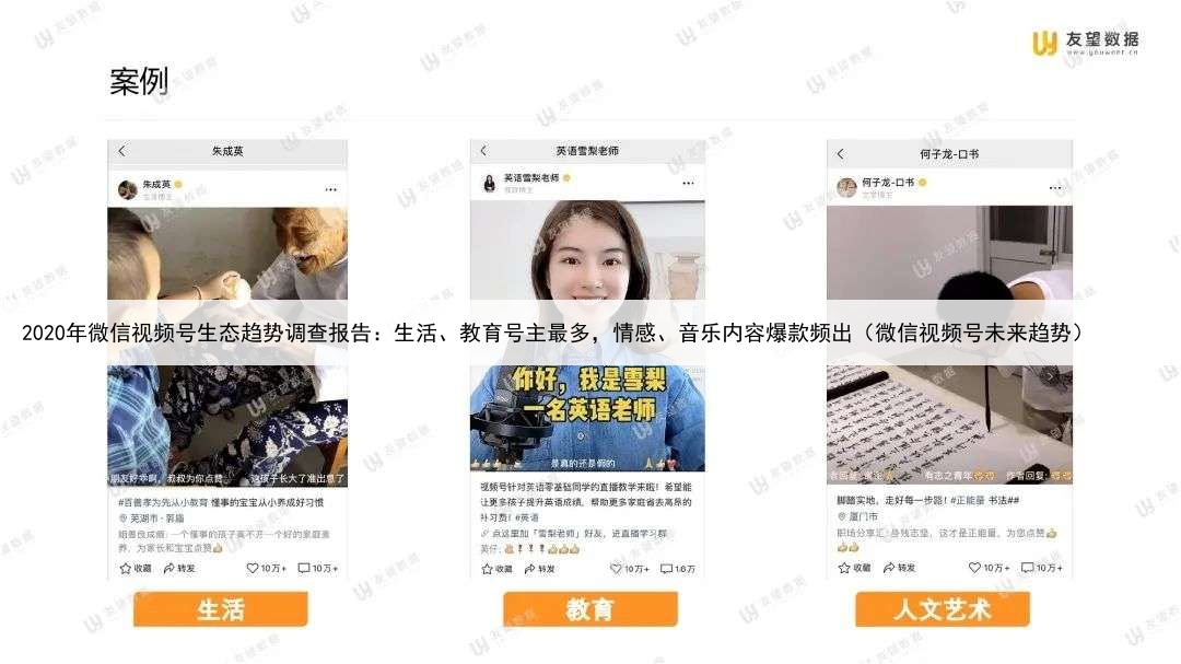 2020年微信视频号生态趋势调查报告:生活、教育号主最多,情感、音乐内容爆款频出(微信视频号未来趋势)