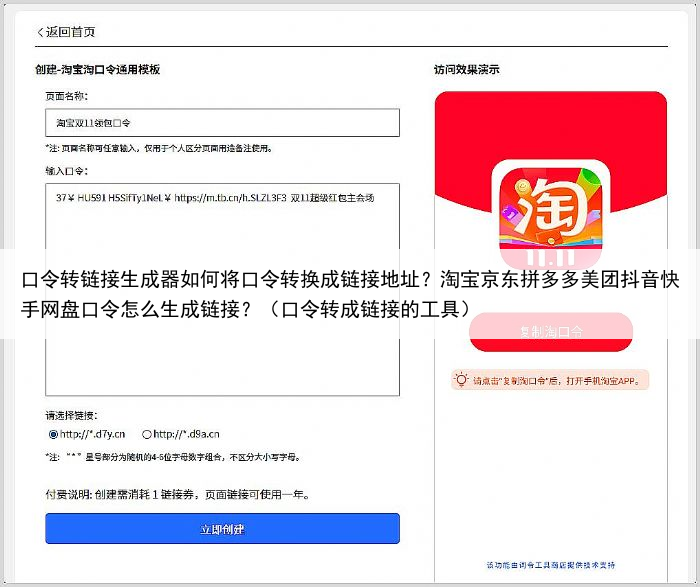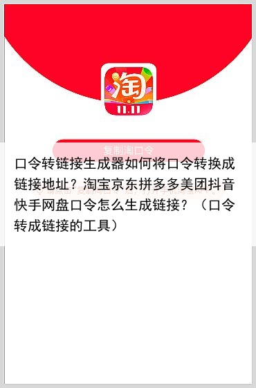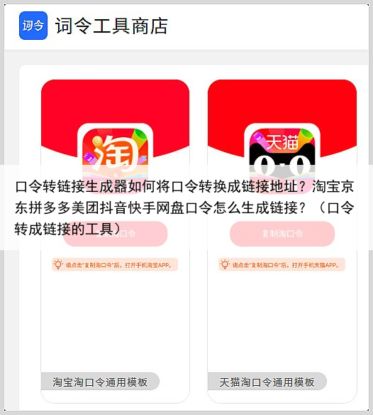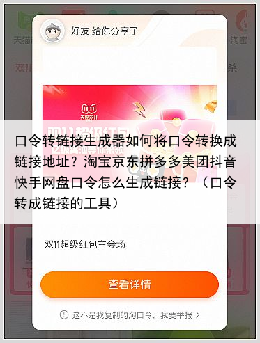 口令转链接生成器如何将口令转换成链接地址?淘宝京东拼多多美团抖音快手网盘口令怎么生成链接?(口令转成链接的工具)