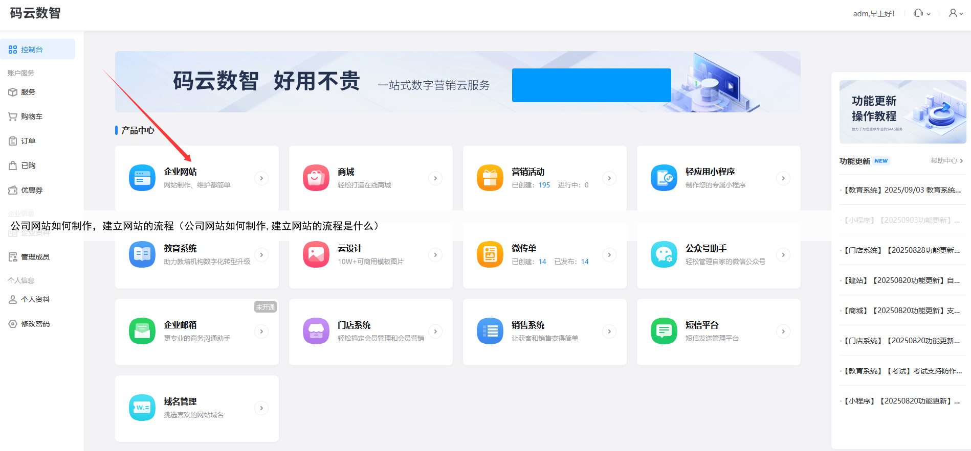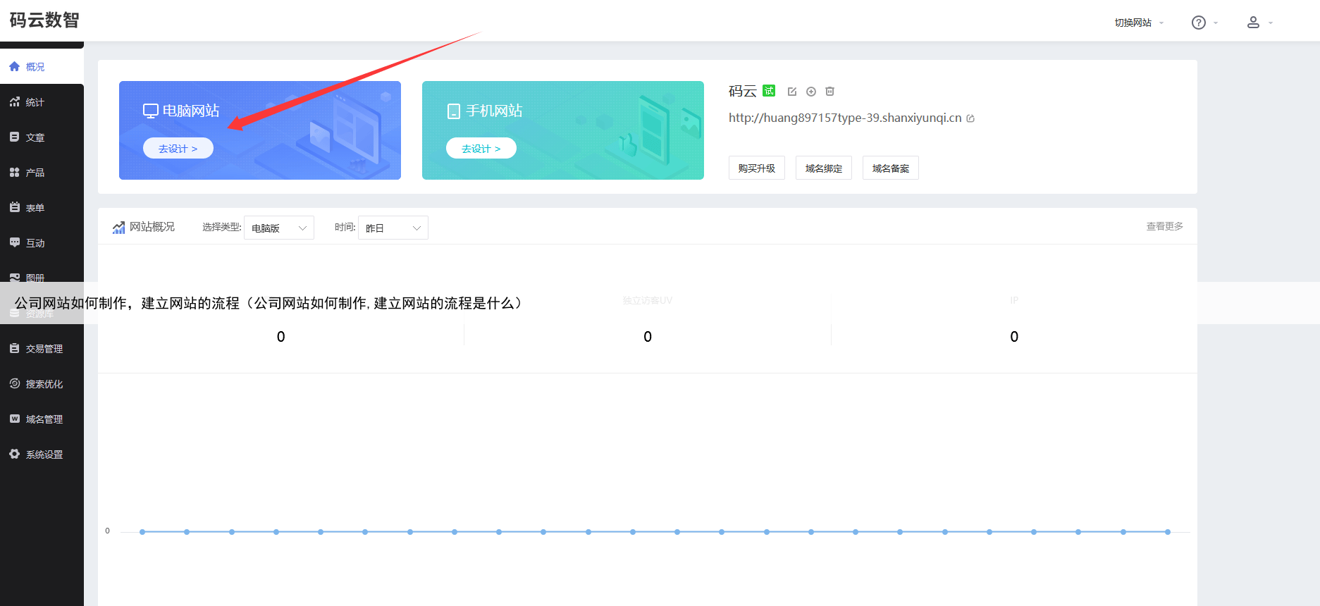 网站制作流程步骤第一步:选择一自助建站平台百度搜索【码云数智】,在【码云数智】自助建站平台注册账号,产品类型选择-企业网站