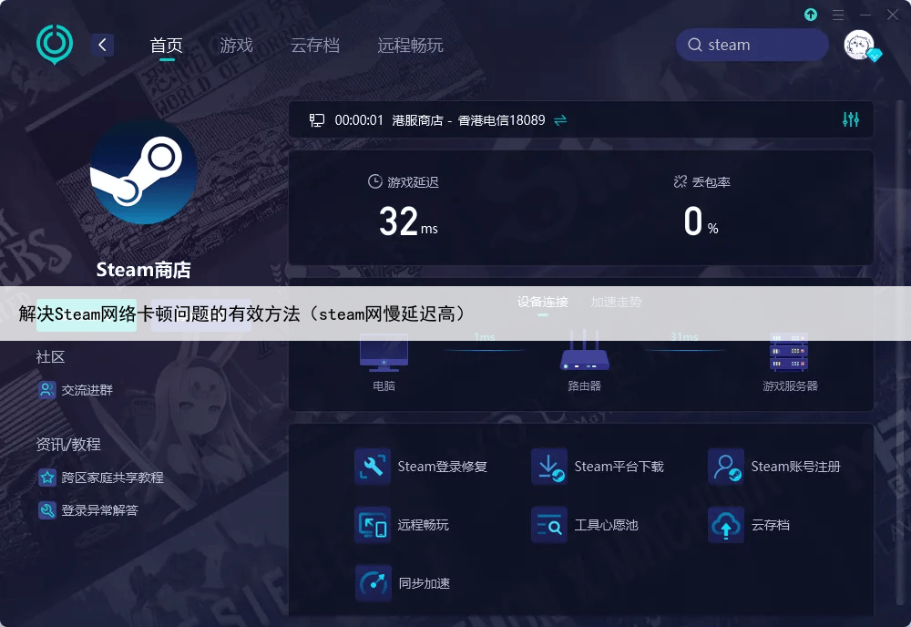 Steam作为全球最大的游戏平台之一,拥有约30,000款游戏,为玩家提供了丰富的游戏体验然而,不少玩家在使用Steam时常常遇到网络卡顿问题,这不仅影响游戏下载和购物体验,更会直接影响游戏内的操作响应,让人十分头疼。