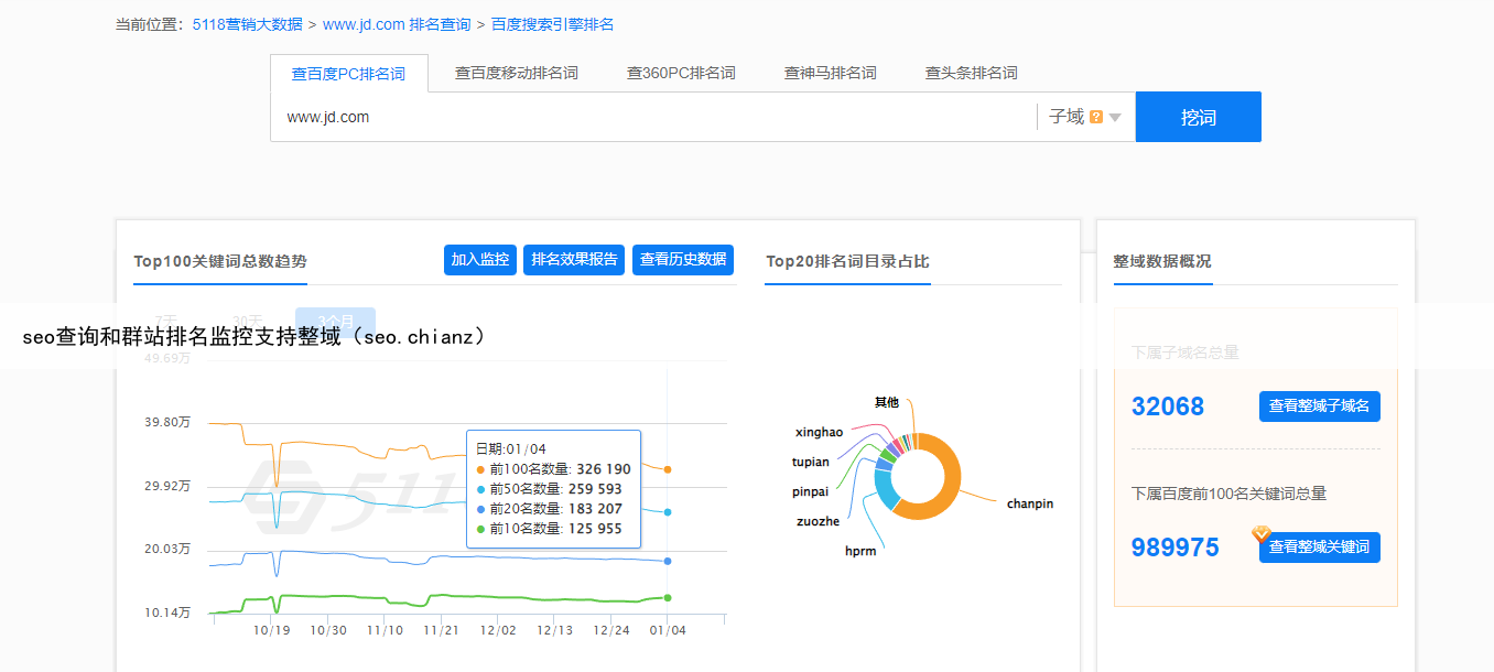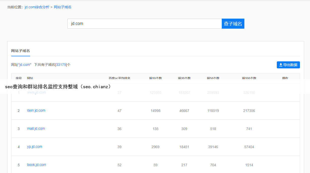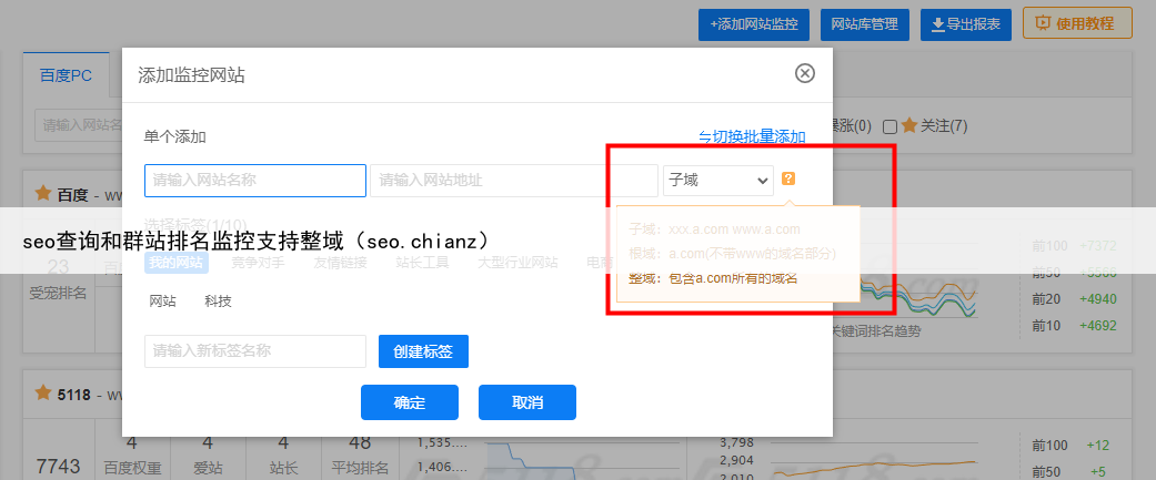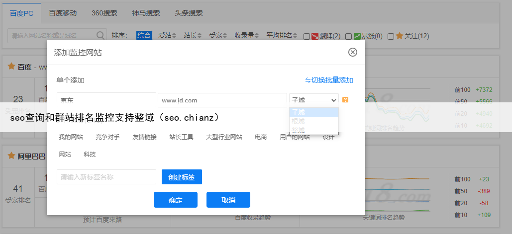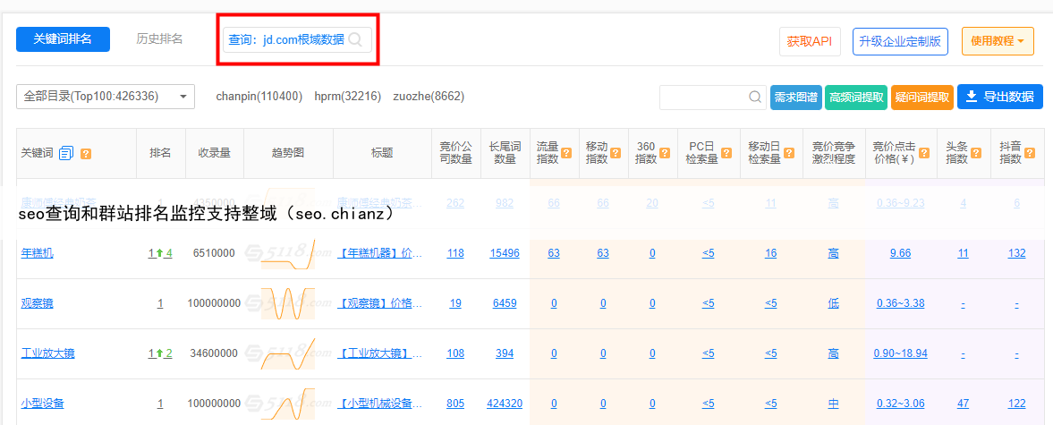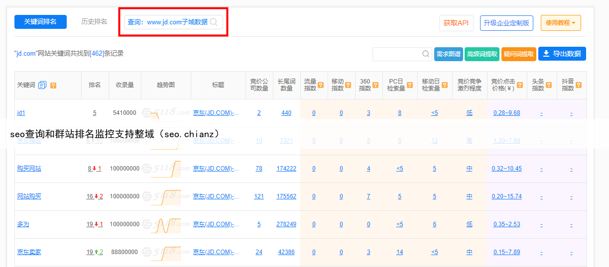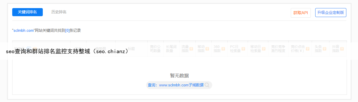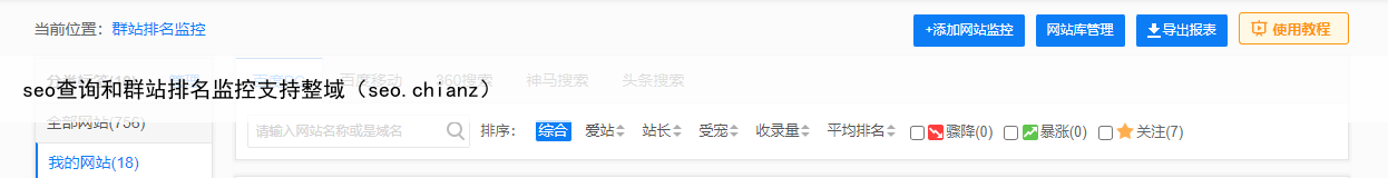 seo查询和群站排名监控支持整域(seo.chianz)