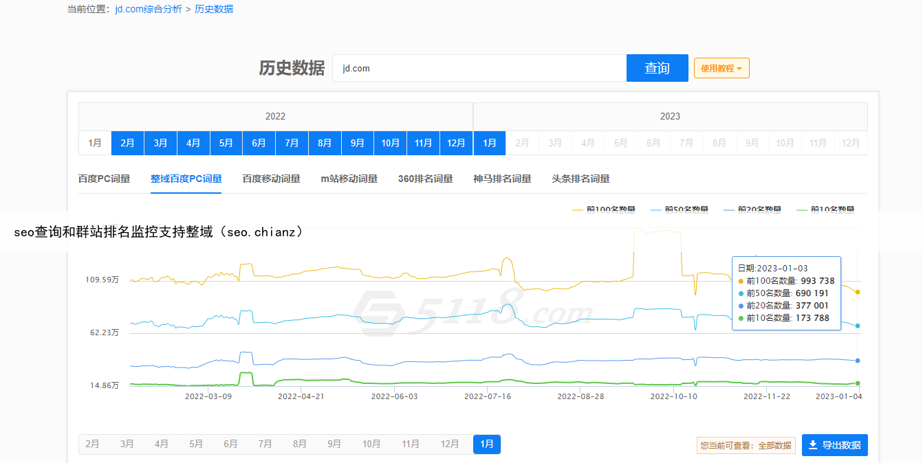 在做seo网站优化时,想要提高自身网站优化效果,不仅要分析自己的网站,也要了解对手网站的优化策略,发现其优势,并和自己网站进行对比,可以对提升自己网站排名起到很好的帮助为了用户能有更好的使用体验,本期5118排名查询功能进行了优化升级,seo综合查询以及群站监控等支持整域查询