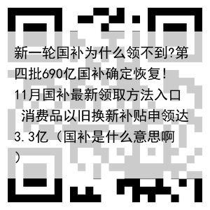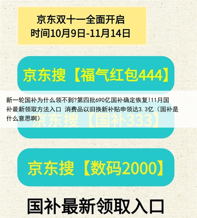 新一轮国补为什么领不到?第四批690亿国补确定恢复!11月国补最新领取方法入口 消费品以旧换新补贴申领达3.3亿(国补是什么意思啊)
