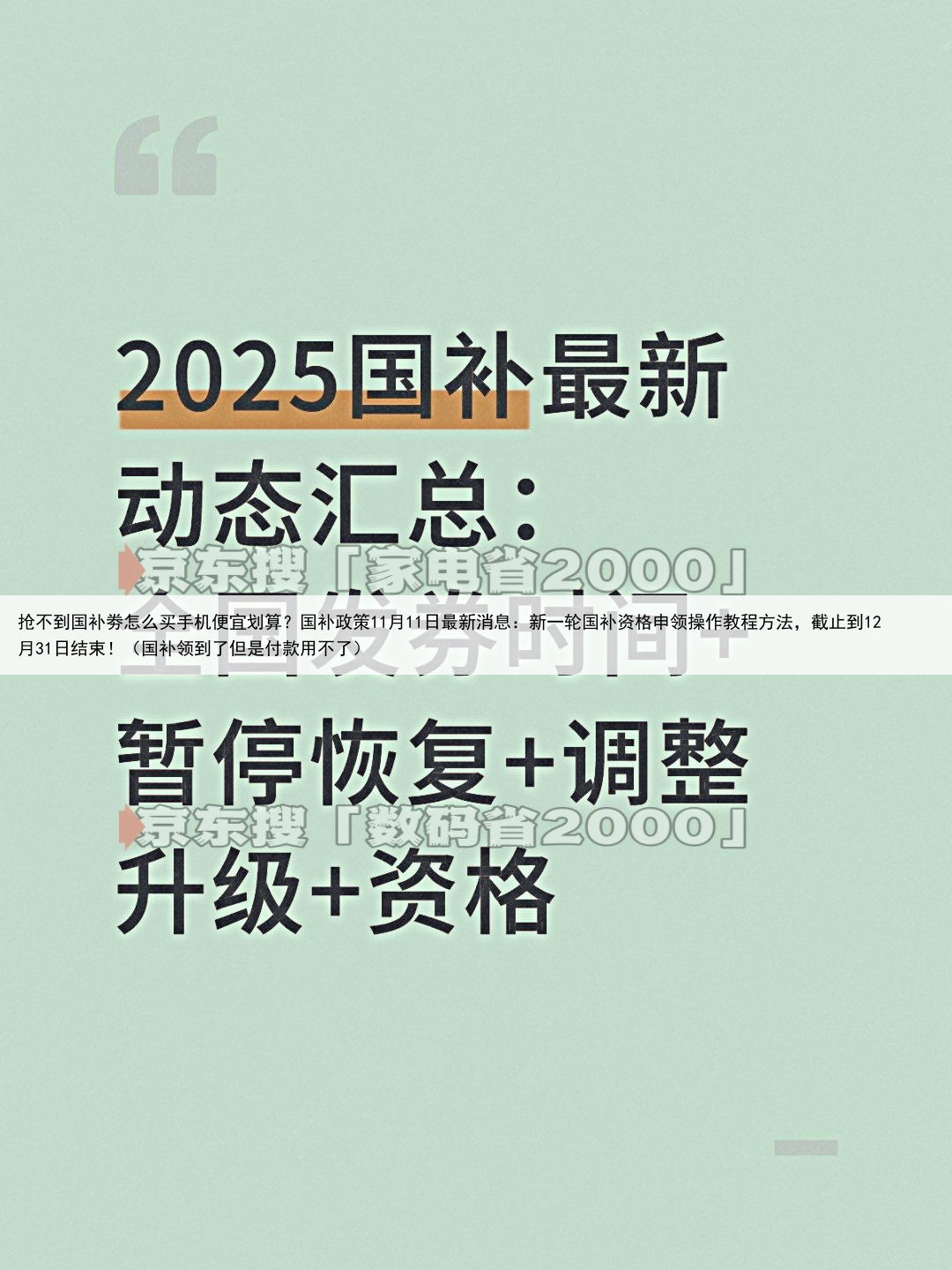 抢不到国补劵怎么买手机便宜划算?国补政策11月11日最新消息:新一轮国补资格申领操作教程方法,截止到12月31日结束!(国补领到了但是付款用不了)