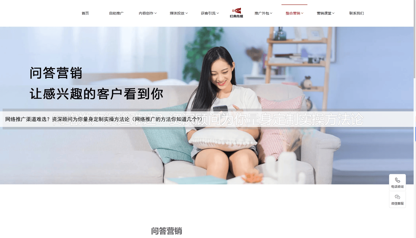 叮典传媒分享现已成为决定品牌生死存亡关键的,是企业怎样去有效开展网络营销推广众多推广渠道面前,好多企业主常常不知所措,要么盲目跟着别人去投入,然而收获的效果却很微小,要么因为预算存在限制,进而失去市场机会。