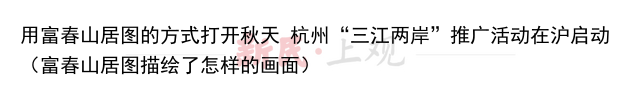 用富春山居图的方式打开秋天 杭州“三江两岸”推广活动在沪启动(富春山居图描绘了怎样的画面)
