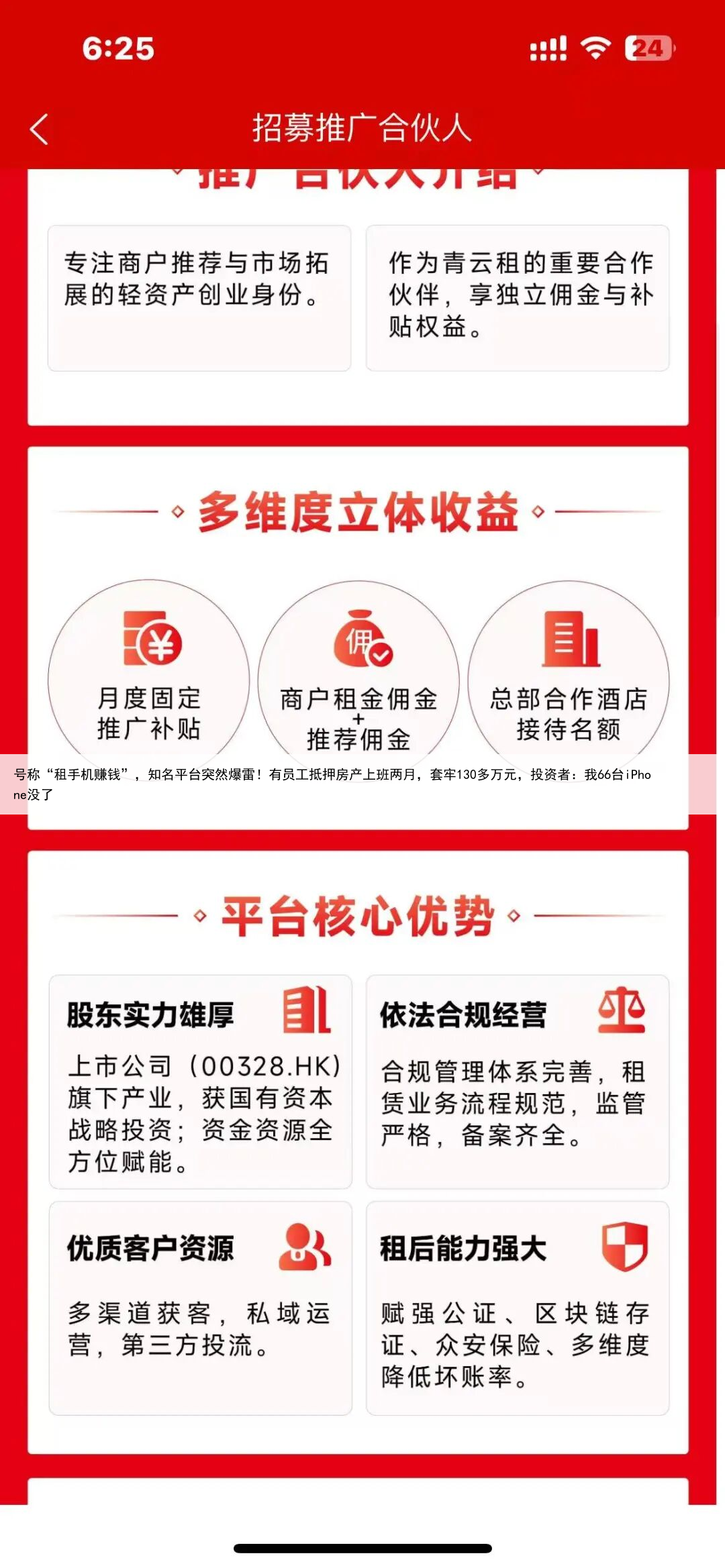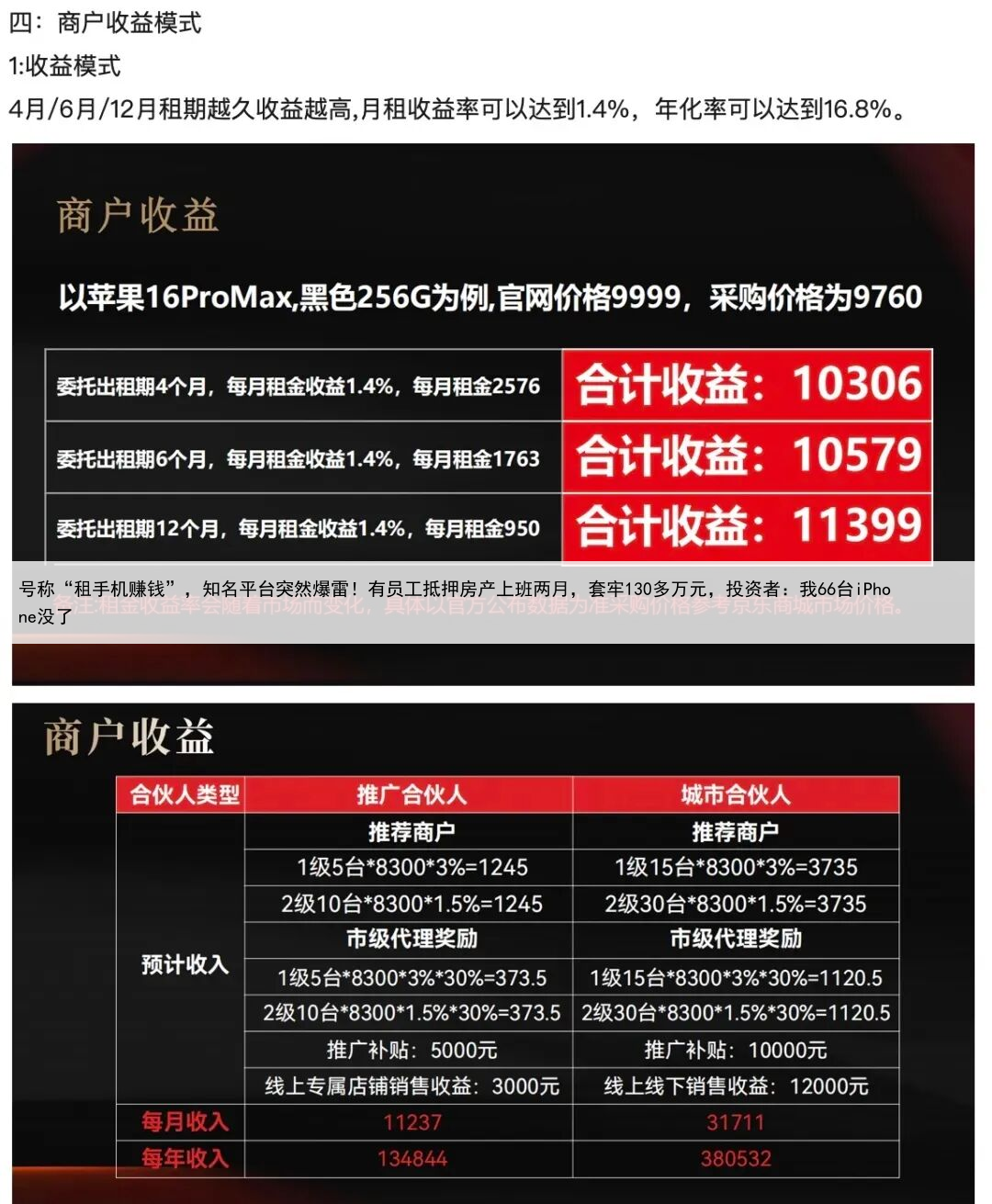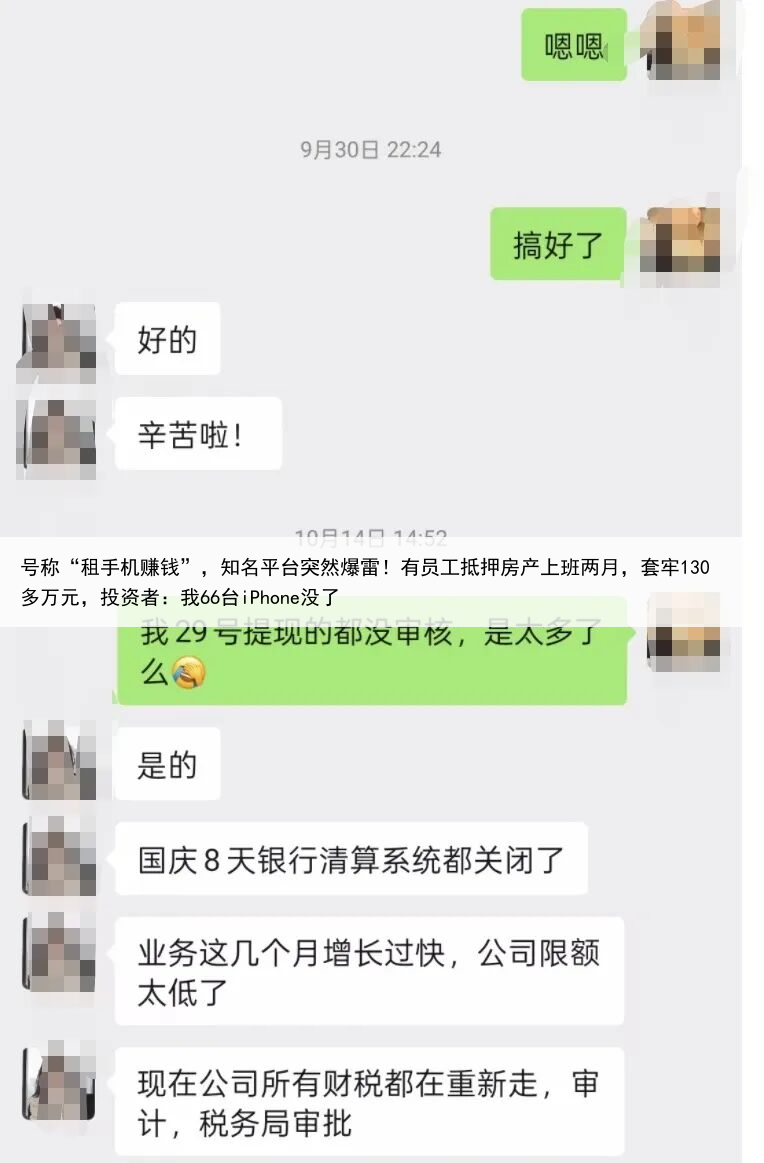 号称“租手机赚钱”,知名平台突然爆雷!有员工抵押房产上班两月,套牢130多万元,投资者:我66台iPhone没了