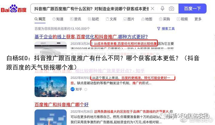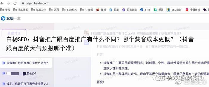 白杨SEO:抖音推广跟百度推广有什么不同?哪个获客成本更低?(抖音跟百度的天气预报哪个准)