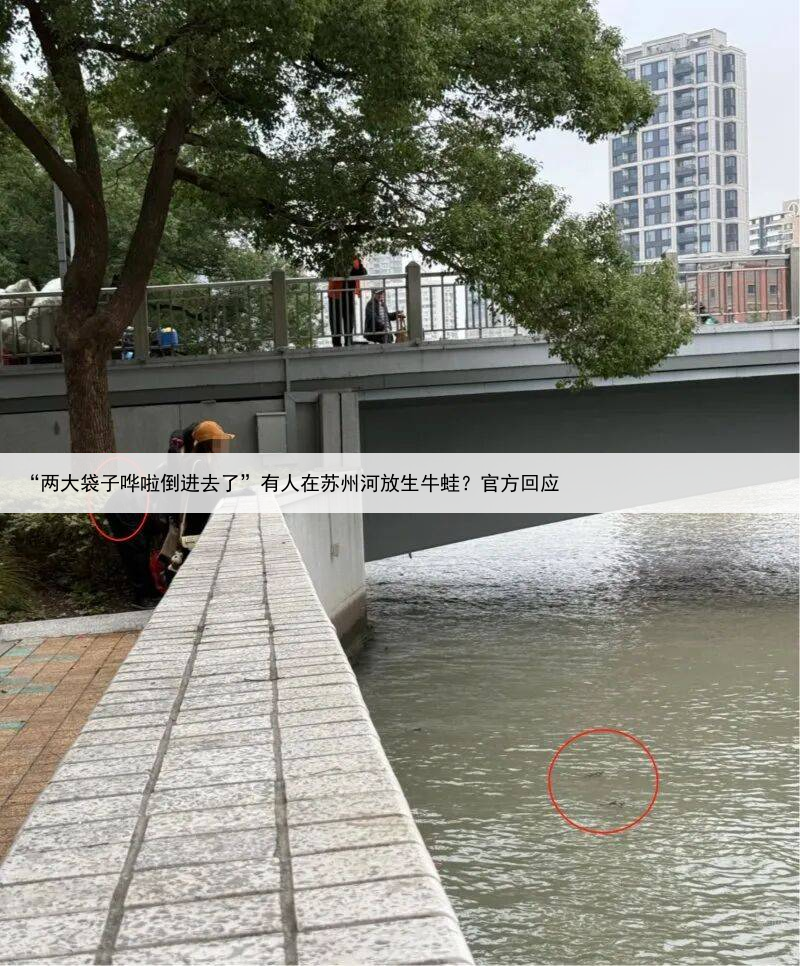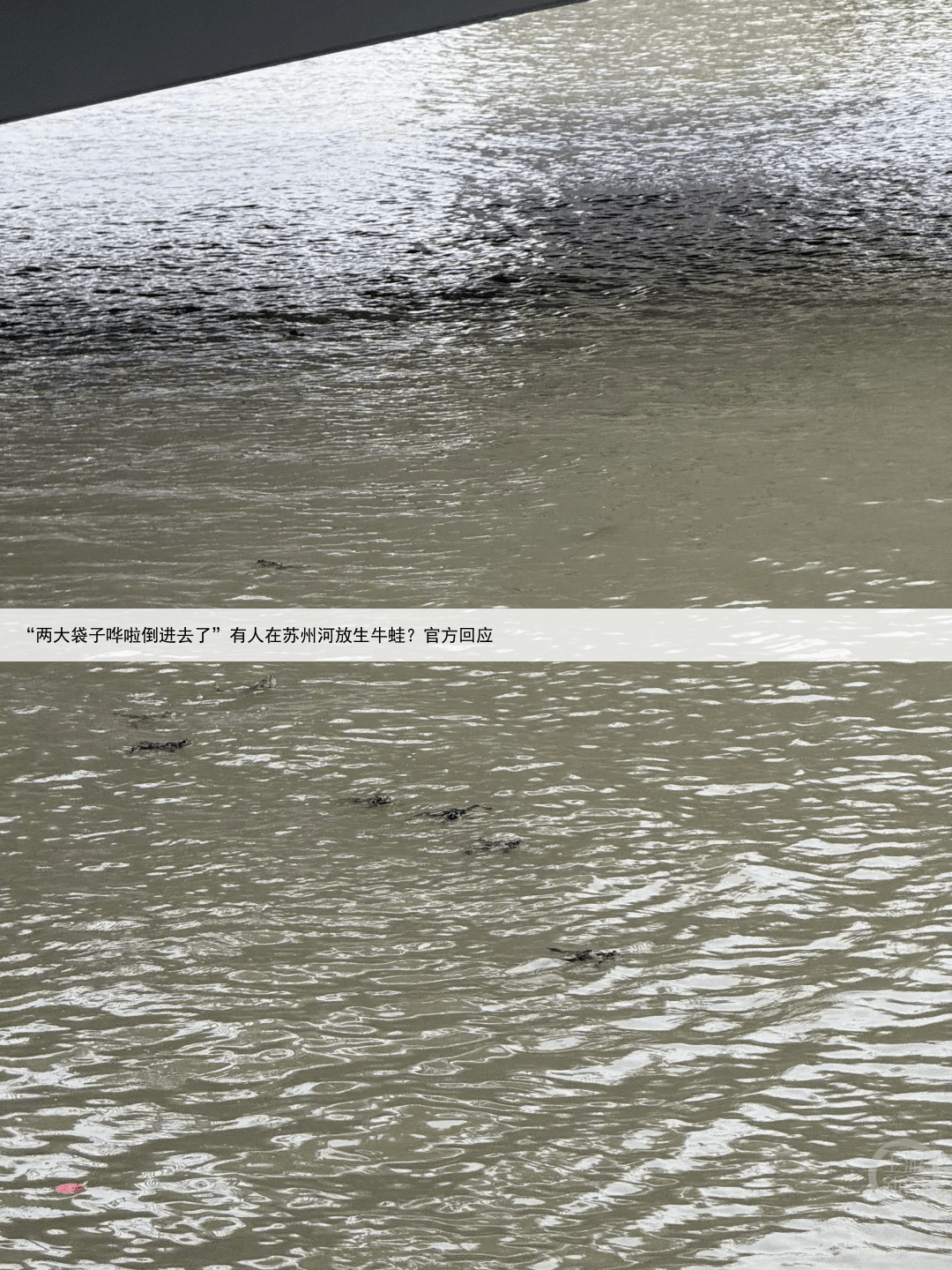 “两大袋子哗啦倒进去了”有人在苏州河放生牛蛙?官方回应