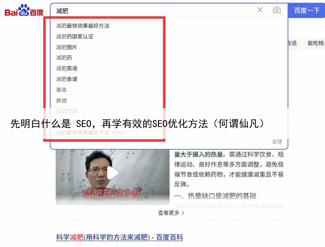 2、关键词挖掘5种方法①百度下拉框——分析用户需求比如:吃什么可以减肥?这里可以提炼出几点用户需求:关注减肥时间、效果、减肥食物或者是减肥水果当你覆盖的用户需求和关注点越多,意味着你触达的用户也越多,成交的概率自然也更大。