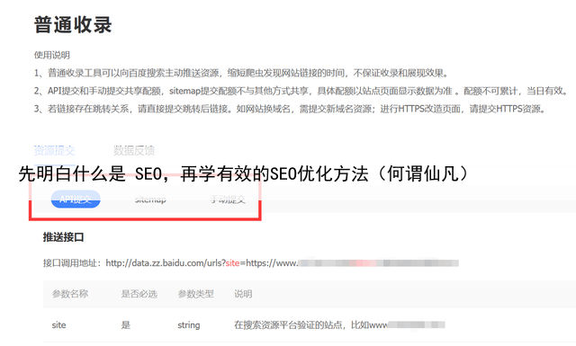 1、API接口推送(收录速度快)百度官方有说明API接口推送是最快的,它的收录速度比sitemap网站地图和手动提交网址都快这个还是不懂的可以直接通过147SEO软件来提交,147SEO里也包括了怎么绑定网站教程。