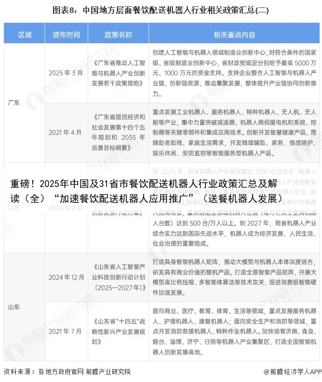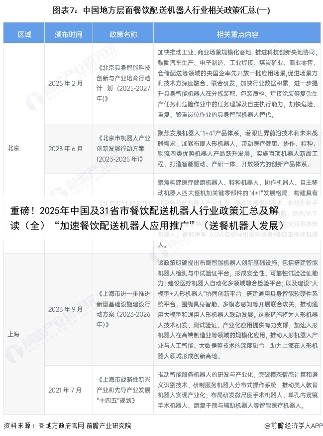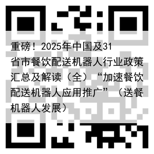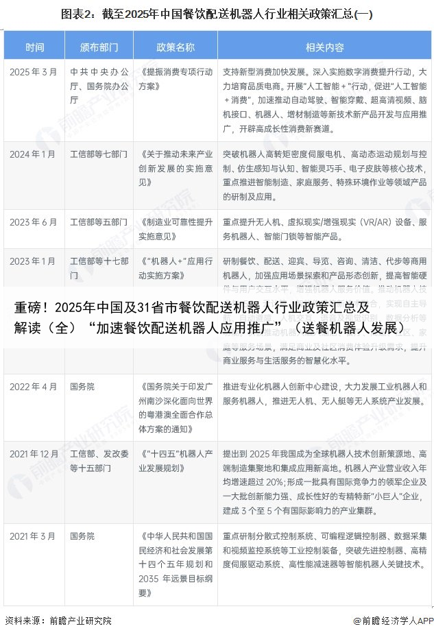 重磅!2025年中国及31省市餐饮配送机器人行业政策汇总及解读(全)“加速餐饮配送机器人应用推广”(送餐机器人发展)