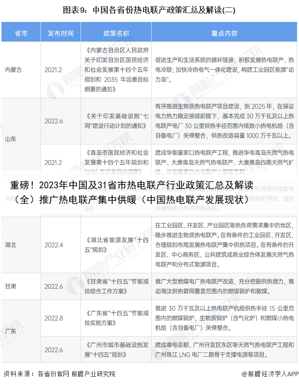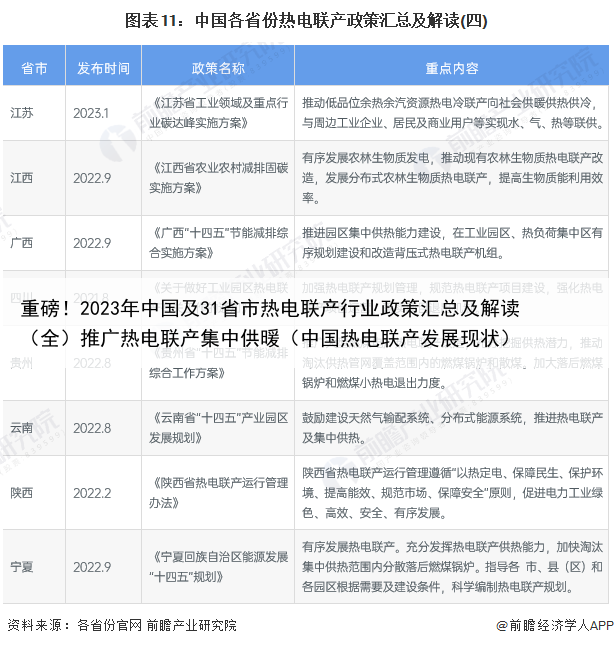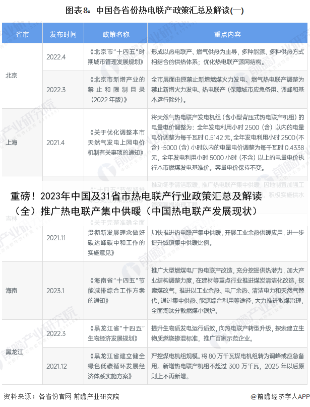 各省市层面的政策汇总及解读——31省市热电联产行业政策汇总除了中共中央、国务院等部门颁布一系列政策外,各省市同样出台了一些举措来促进热电联产行业的发展。