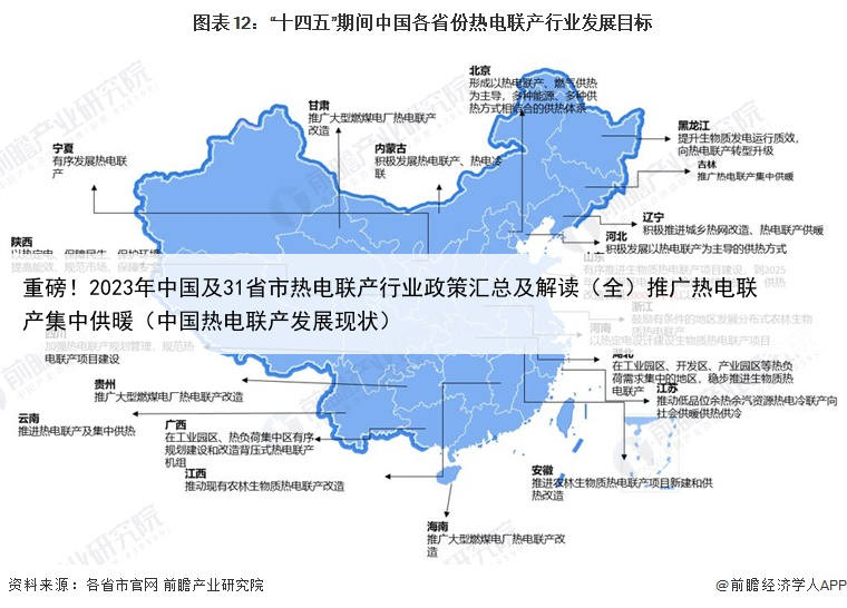 全国31个省市“十四五”器件热电联产发展目标如下: