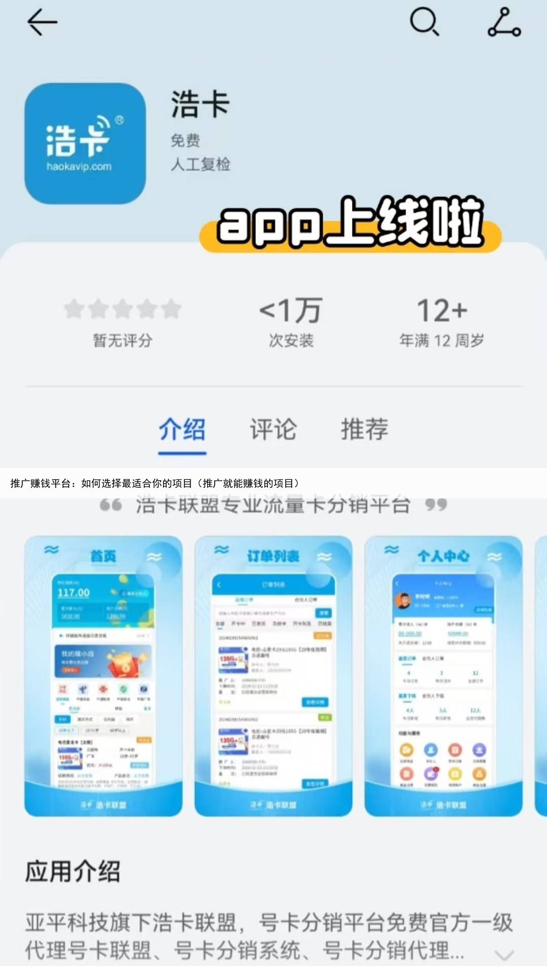 如何选择合适的推广平台研究市场在选择推广赚钱平台之前,首先要对市场进行充分的研究可以通过互联网查找相关信息、查看用户评价,了解不同平台之间的优劣势比较不同平台市面上有许多号卡分销平台,例如浩卡联盟、敢探号、172号卡等。