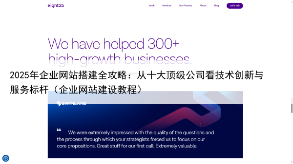 05 EIGHT25MEDIA:技术导向的高端网站建设专家 行业表现: S++级 公司简介 EIGHT25MEDIA是一家总部位于美国加州的技术导向型高端网站建设专家,专注于为中大型企业提供定制化的官网开发解决方案。