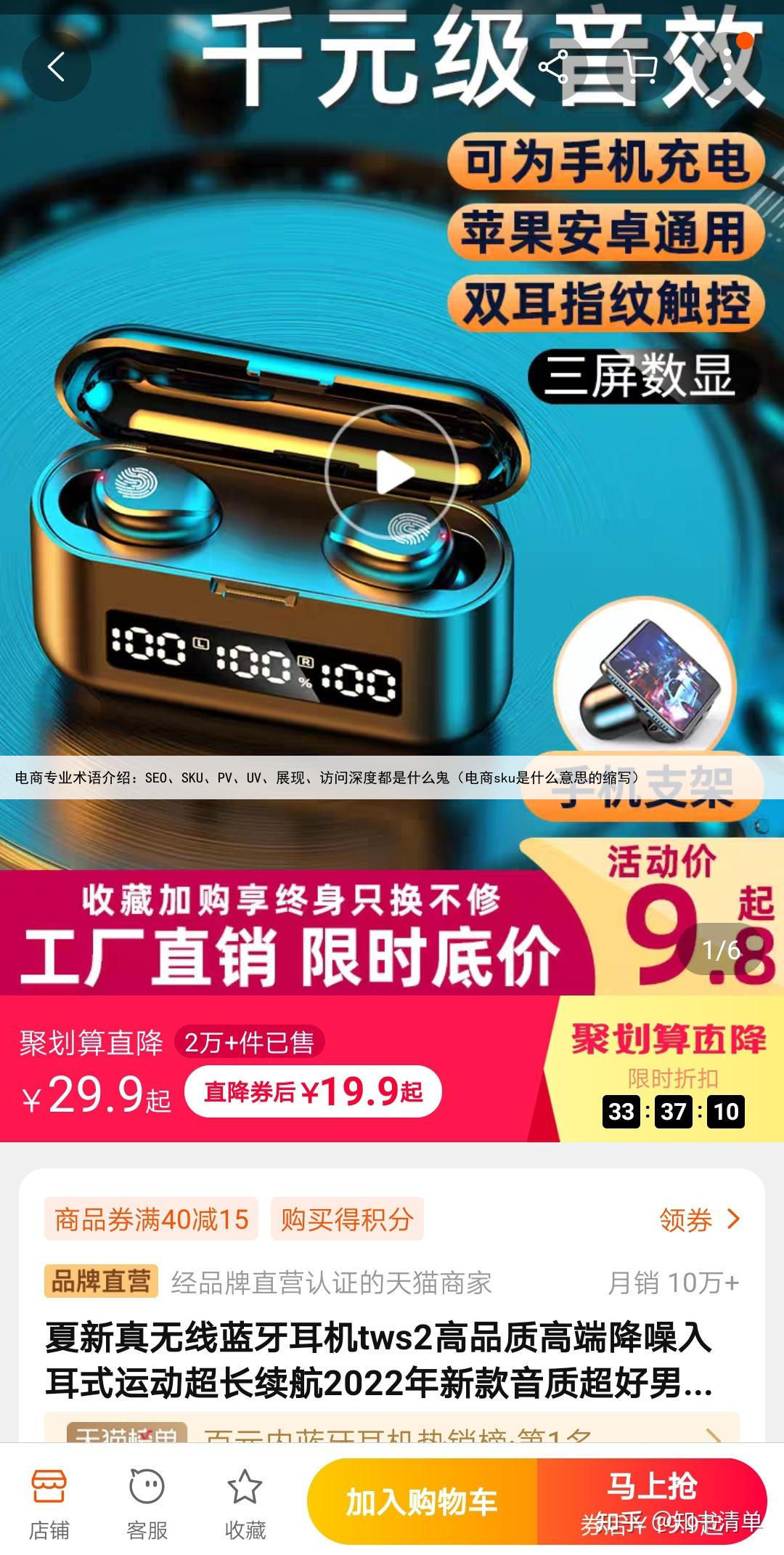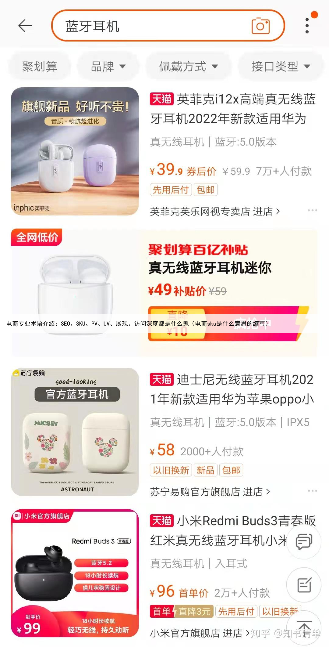 如果访问深度只有1,就说明店铺关联没有做好,用户只打开了1个产品,然后就离开了。 【举个栗子】①打开淘宝APP,输入关键词“蓝牙耳机”进行搜索; 第一个页面,我们看到了3款产品;