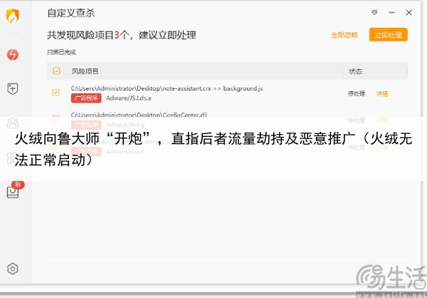 火绒向鲁大师“开炮”,直指后者流量劫持及恶意推广(火绒无法正常启动)
