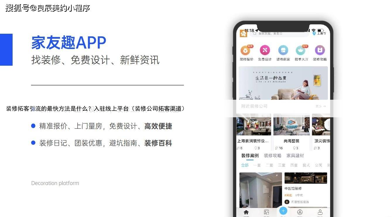 四、家友趣装修平台:刚需装企“快速填档+邻里信任”的拓客入口对服务商(装企):“刚需客资+短周期转化”,快速填充档期客资以8-15万刚需套餐、80㎡以下小户型为主,需求集中在“收纳优化、成本可控”,装企可推标准化套餐,谈单周期缩短50%;优先展示“同小区已签约案例”,用邻里信任背书,签约率比陌生客资高25%。