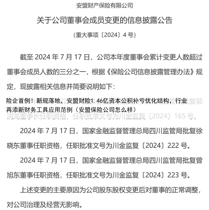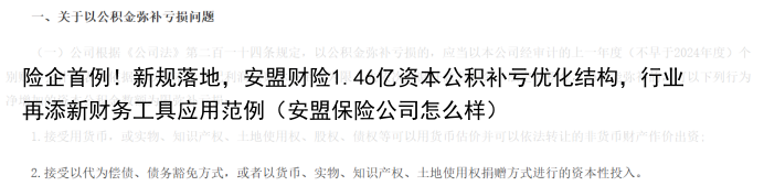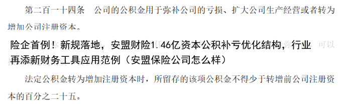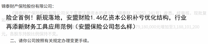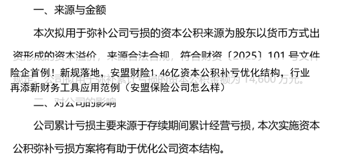 险企首例!新规落地,安盟财险1.46亿资本公积补亏优化结构,行业再添新财务工具应用范例(安盟保险公司怎么样)