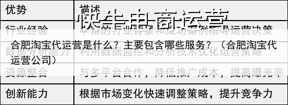同时,专业团队能够针对店铺进行个性化设计,优化商品展示,提高用户体验,从而增加店铺的转化率下表简要列出专业代运营团队的优势: