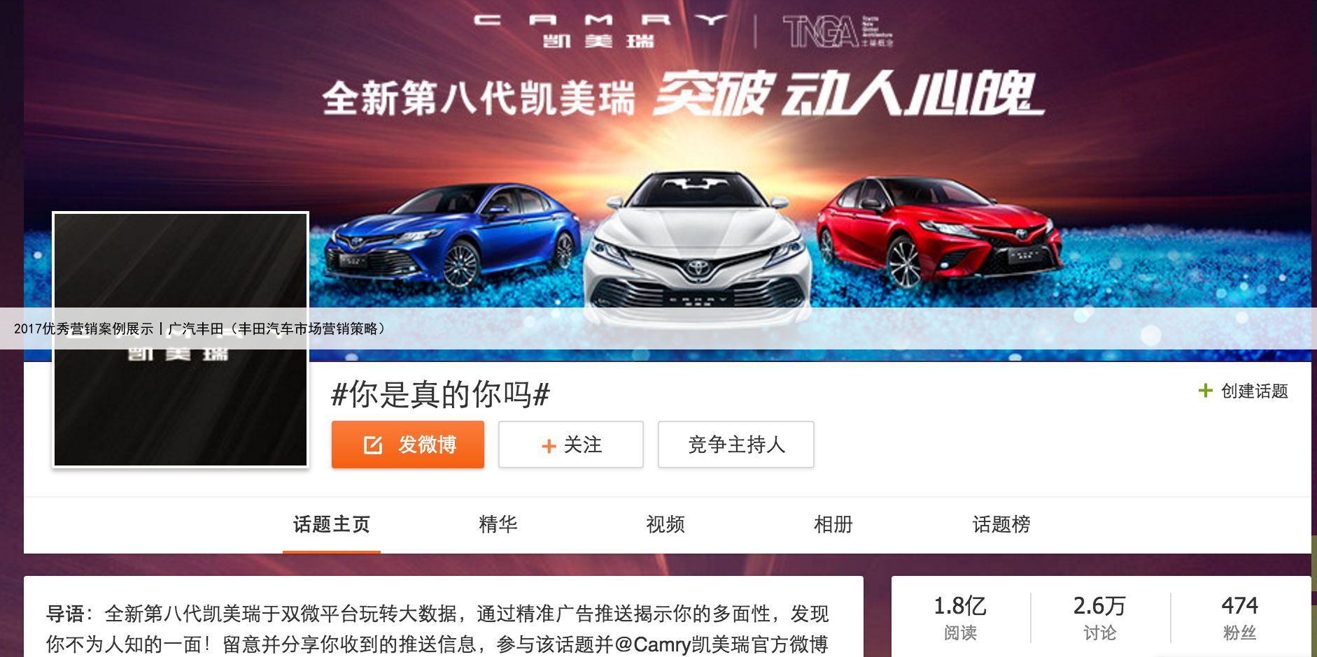 微博营销:微博 × 凯美瑞#你真的是你吗?# 凯美瑞更懂你 凯美瑞相信每个人都是多面体:“你经常见到的我可能只是一部分的我,我有另外一面甚至更多面是你不了解的”凯美瑞携手新浪汽车为新车上市打造#你真的是你吗?#超级话题,利用新浪官方微博+KOL的舆论引导,引发一场“大部分人眼中的我,只是表面的我,全新凯美瑞知道我的另外一面”的讨论,洞悉人心深层次的欲望,引发来自灵魂的认同感。